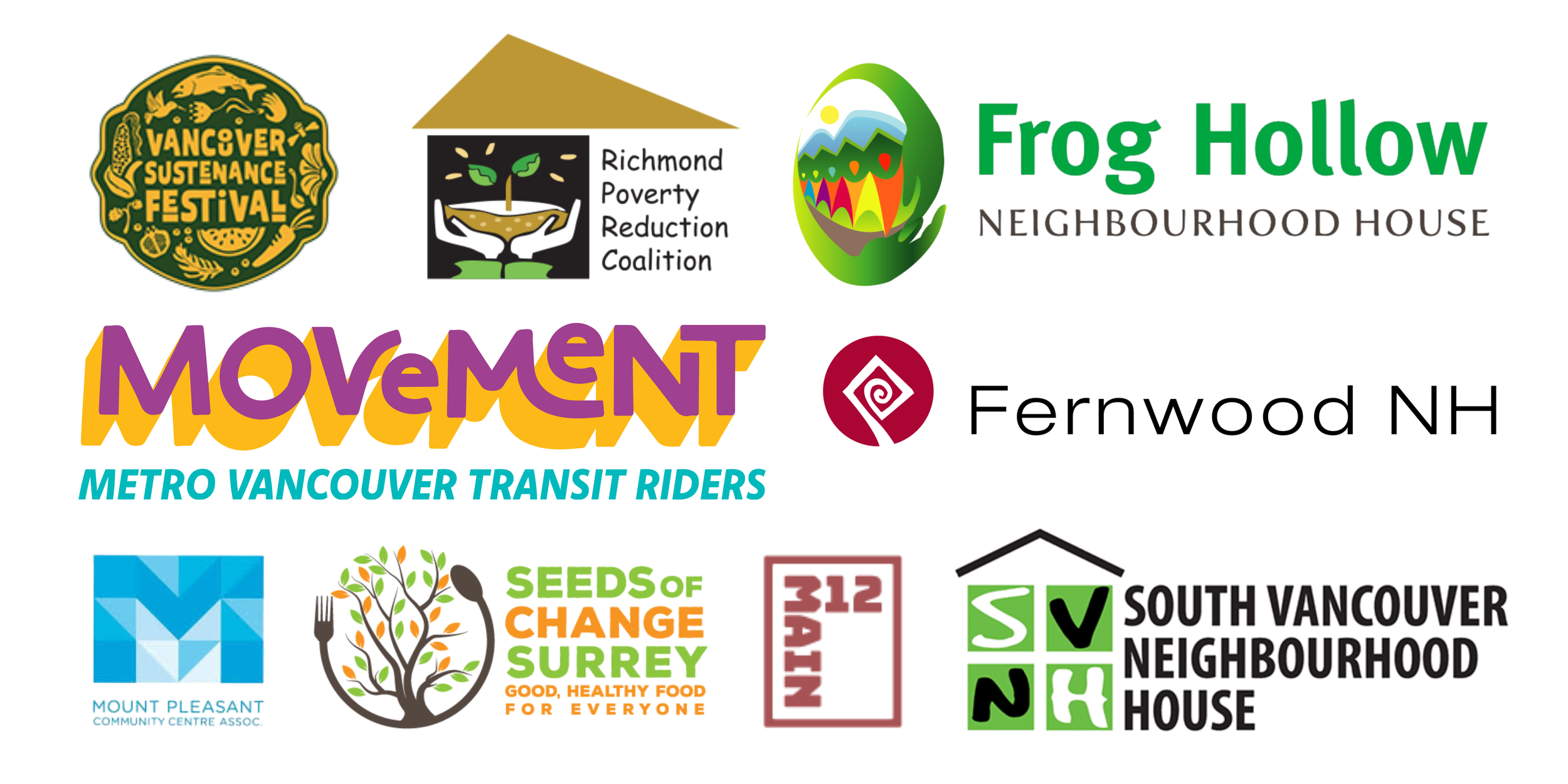 Thank you to our collaborators for connecting us to community members through your programs and venues: Vancouver Sustenance Festival, Richmond Poverty Reduction Coalition, Frog Hollow Neighbourhood House, Movement YVR, Fernwood Neighbourhood House, Mount Pleasant Community Centre, Seeds of Change Surrey, 312 Main, and South Vancouver Neighbourhood House.